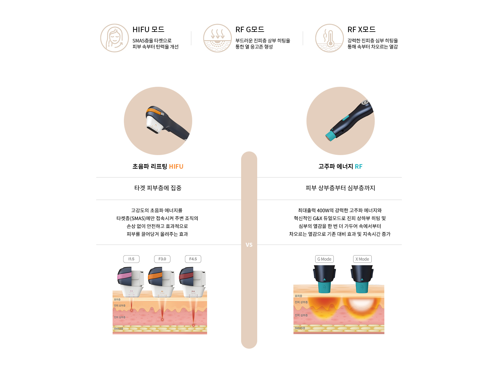 올리지오키스는 초음파(HIFU)와 고주파(RF)